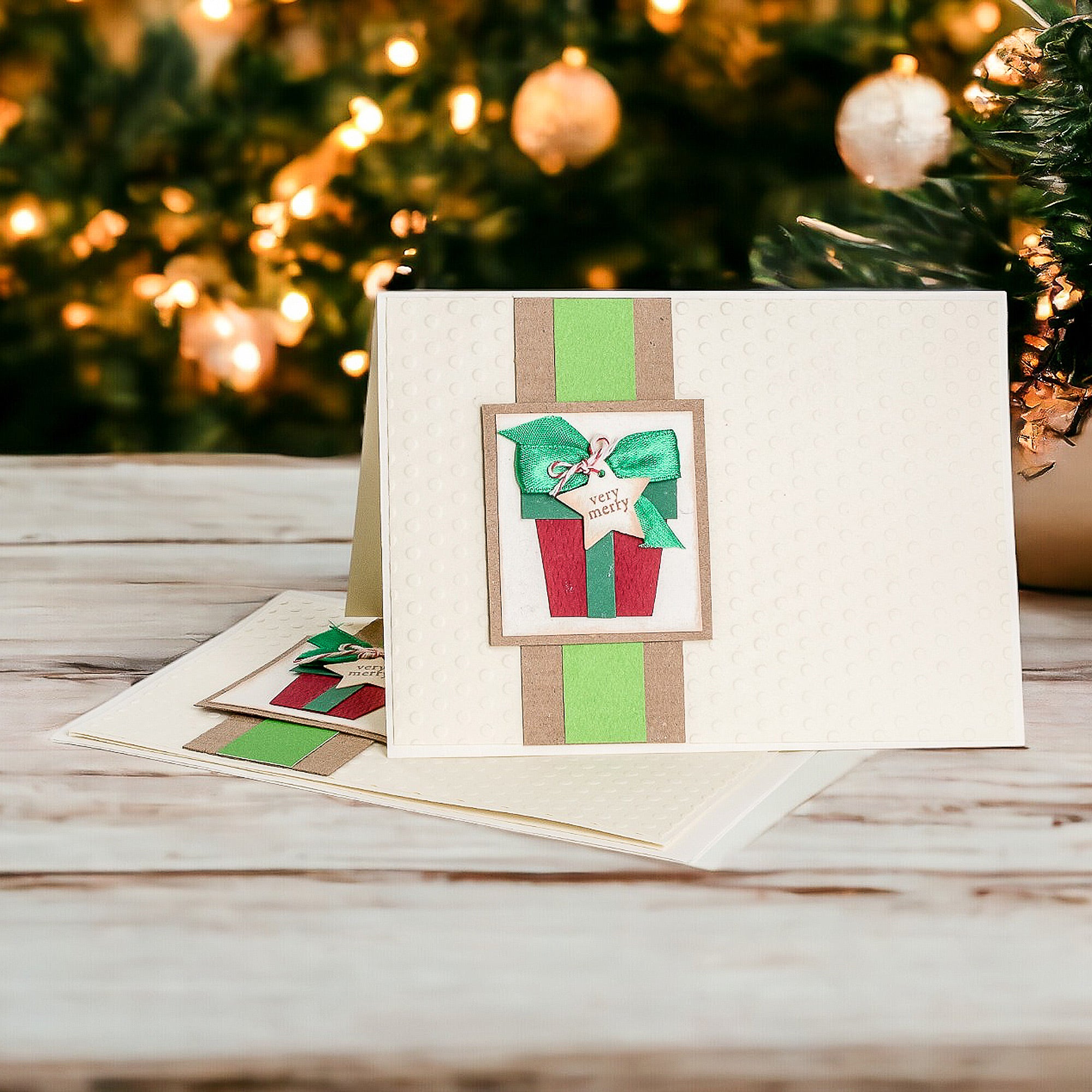 Elevate your holiday greetings with this pair of cards adorned with a colorful gift motif complete with a big green bow. Handmade by the artisans of the Association of Magdalena Women Artists in Guatemala, the Lino paper cards come with corresponding envelopes and are beautifully tied with a reed ribbon, exuding a spirit of celebration and authenticity that will delight both the sender and the recipient.
