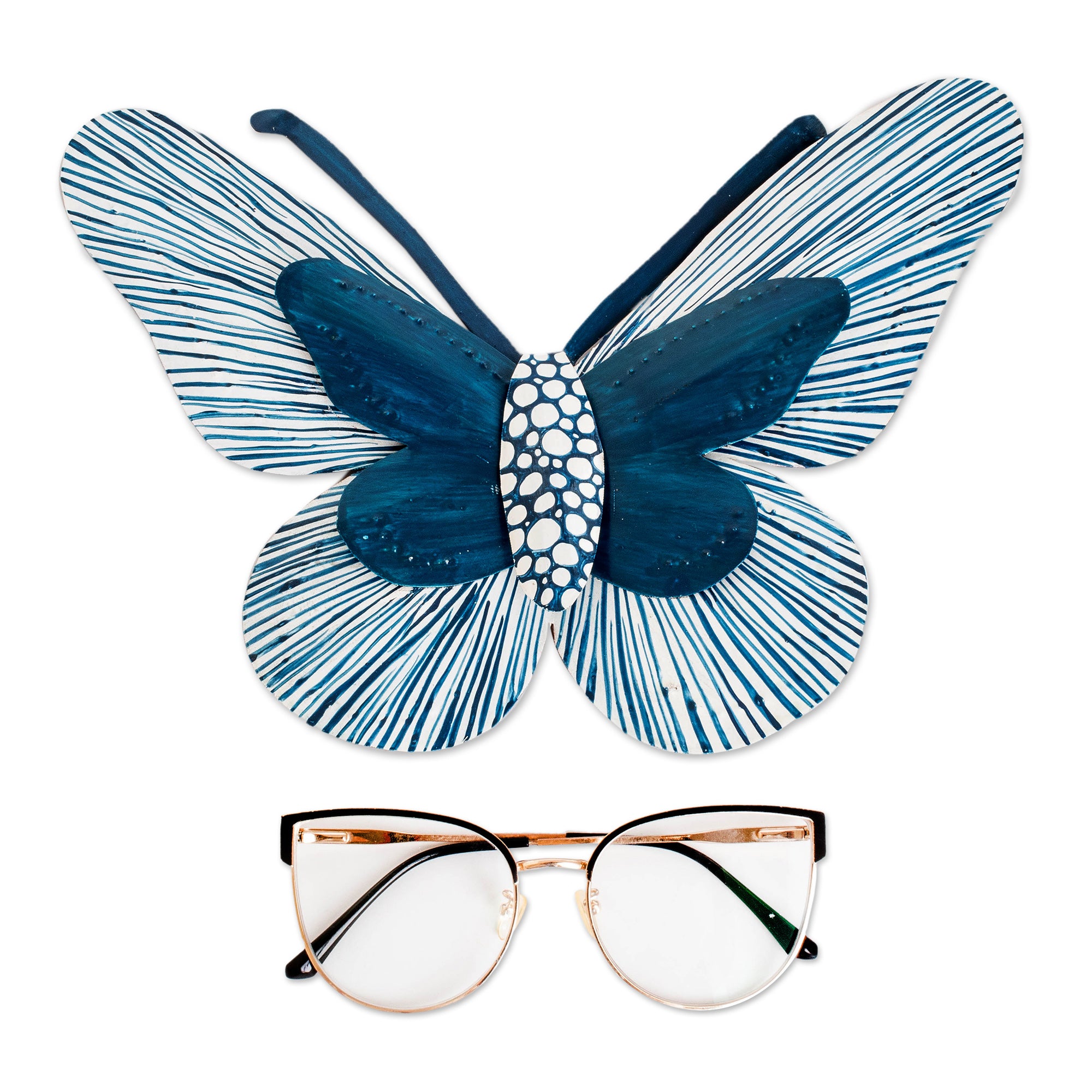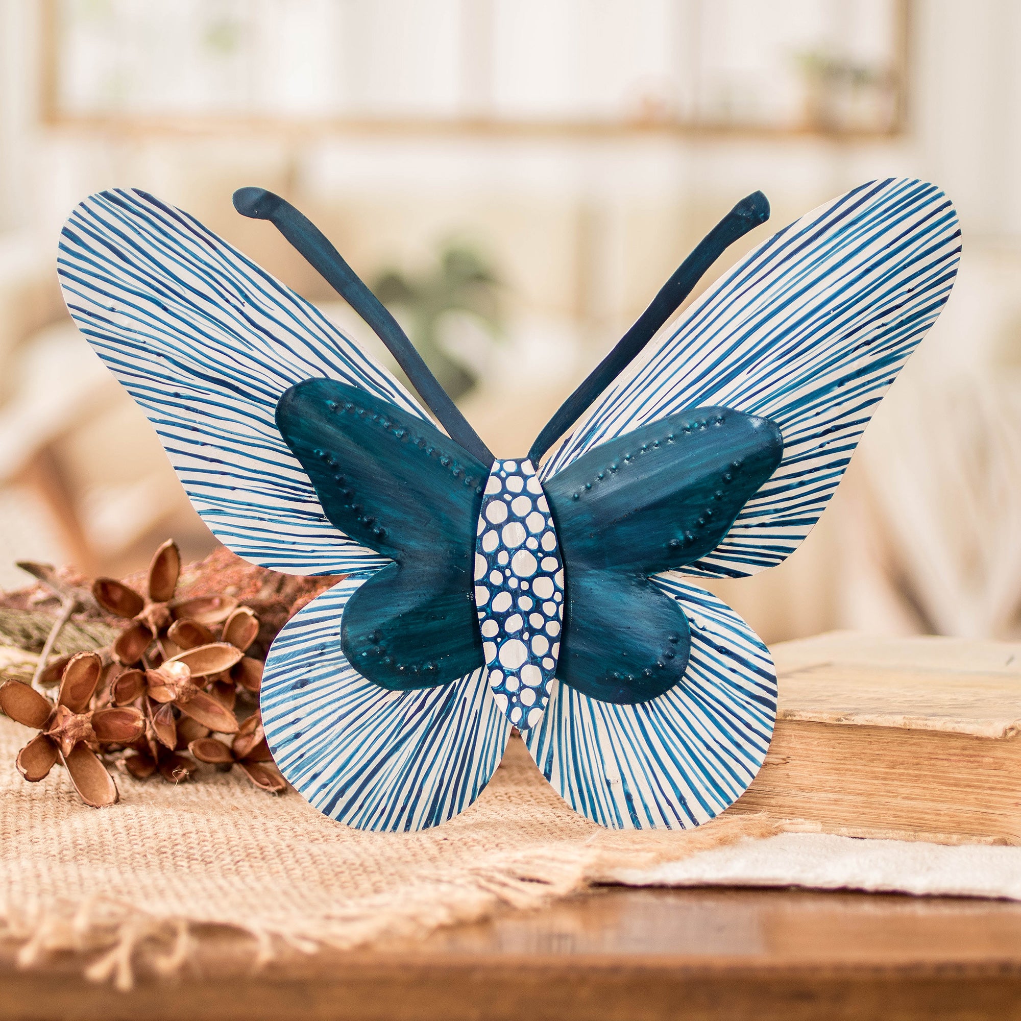 Turquoise Blue Butterfly Steel Wall Art from El Salvador - Flutter in the Wind | NOVICA
