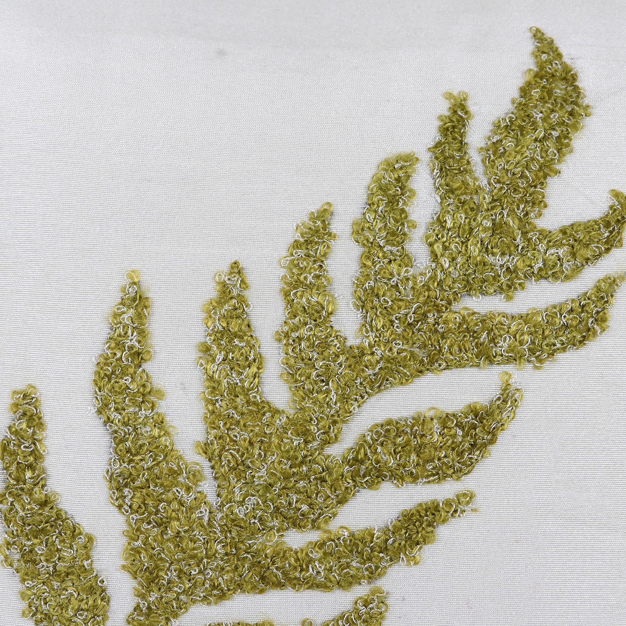 Indian textile designer Seema loves to play with bright colors and various fabrics, and these attractive pillow covers are a wonderful example. Rayon thread, in chartreuse and brown, is embroidered onto cream polyester in a whimsical, leafy pattern that evokes the bright and dappled comfort of a shaded garden. The pair of covers features concealed zippers on the solid cream backs.