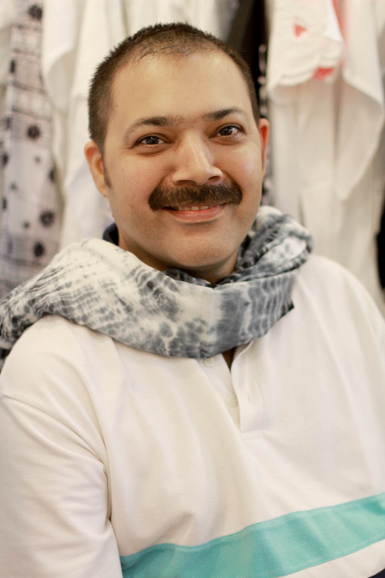 India's Shalabh presents this versatile sleeveless blouse, perfect for pairing with jeans but equally at home beneath a blazer. The blouse features traditional chikankari embroidery and a front placket with matching blue buttons.