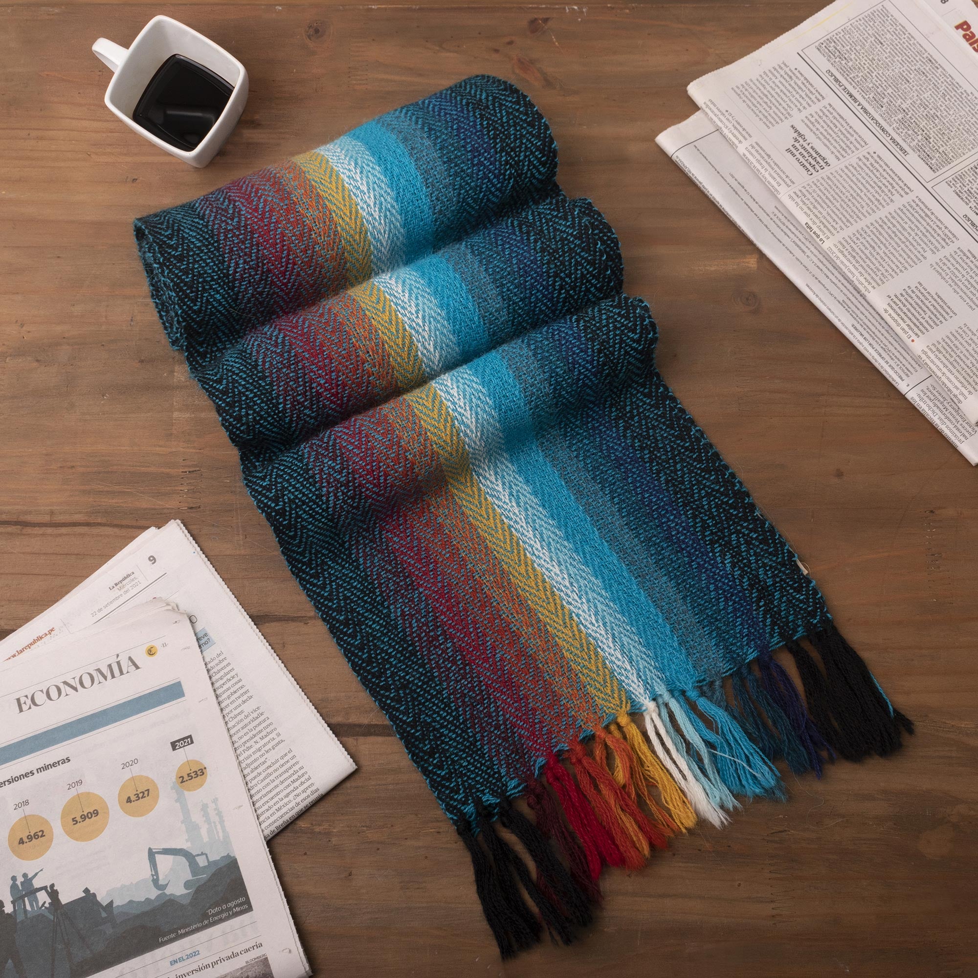 This beautiful 100% alpaca scarf will provide both warmth and comfort for both men and women this winter. Hand woven by the Ulloa Family of Peru, it is in a rainbow of earth colors, making it appropriate for casual and even business casual wear.