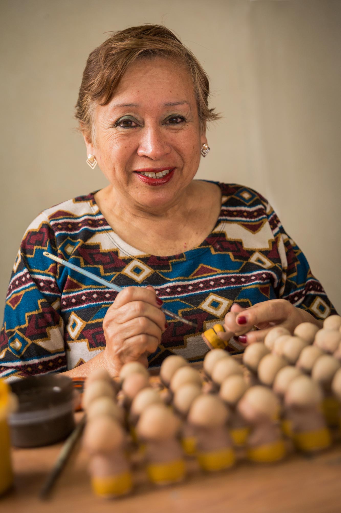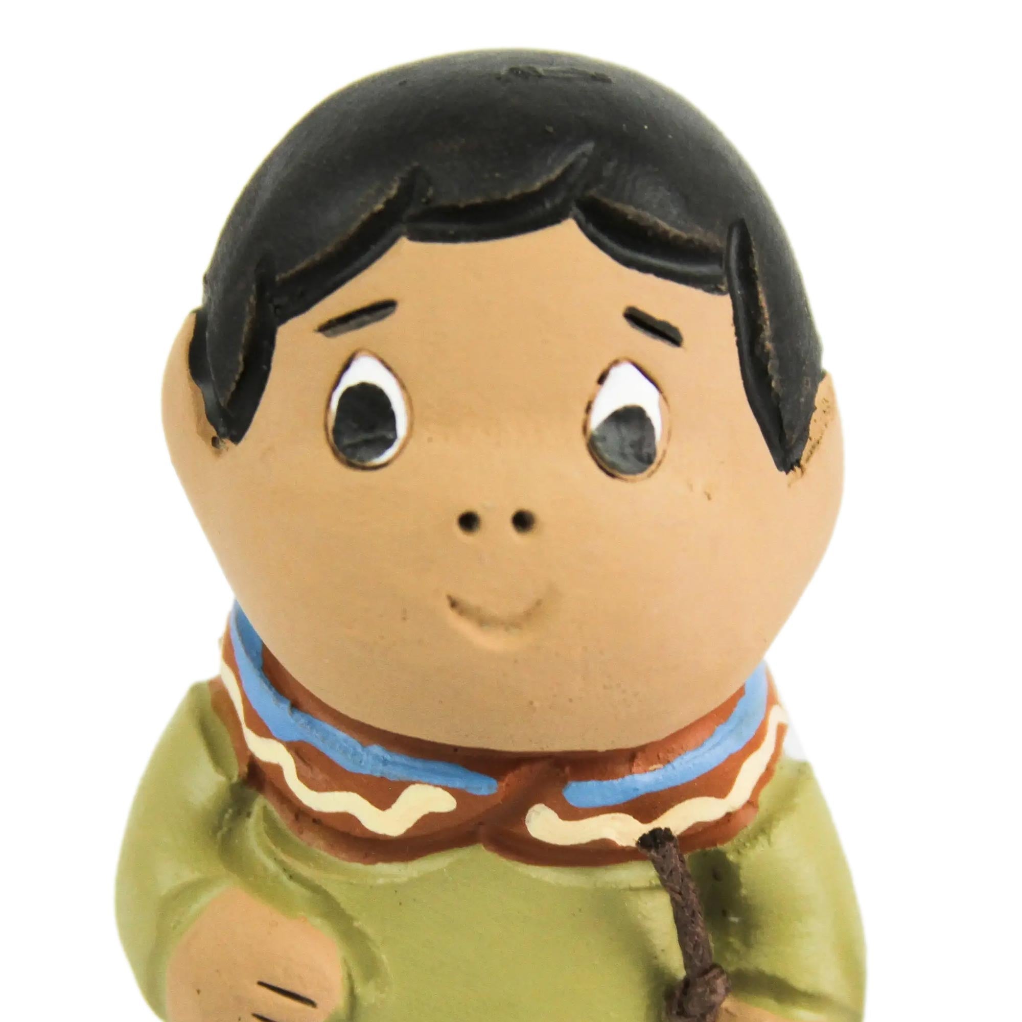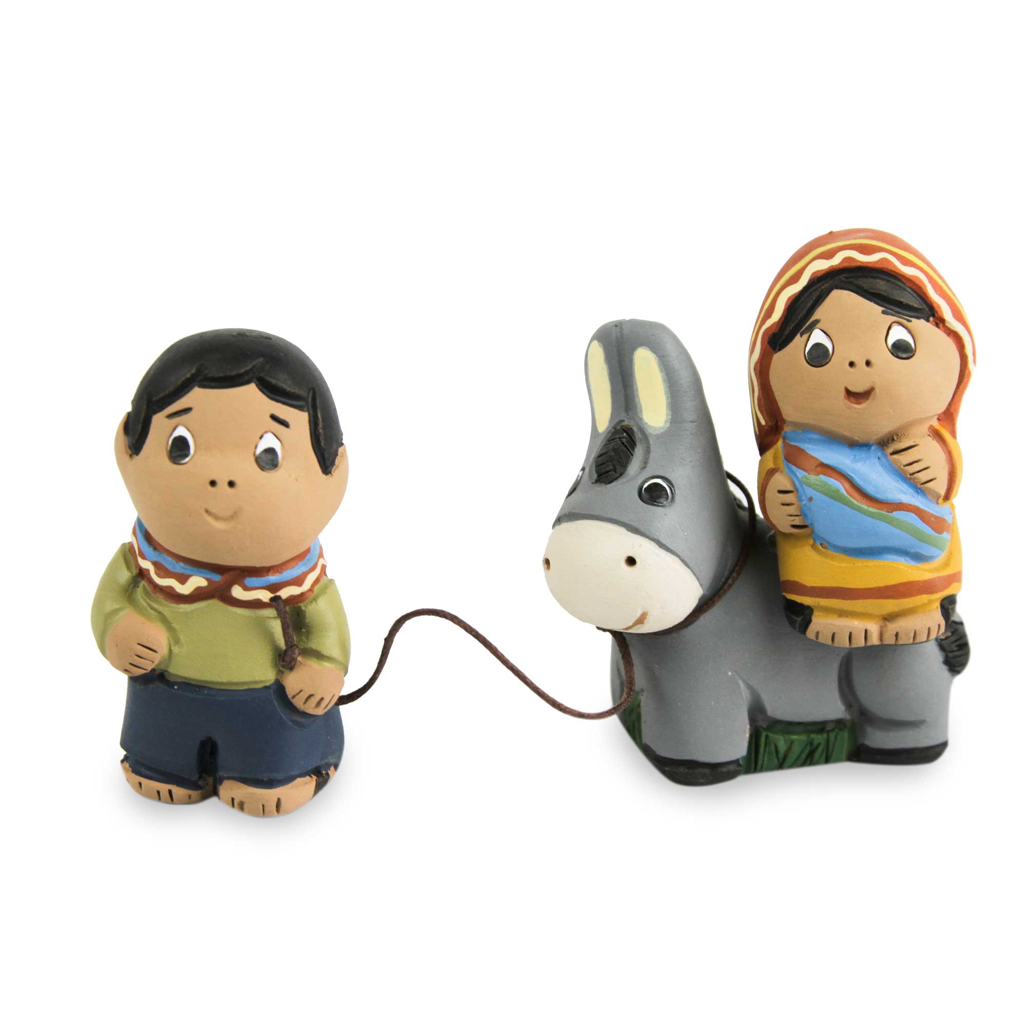 Pausing for a moment on their hurried flight to Egypt, Mary comforts the Christ child as Joseph stands watch. In an effort to wipe out all competition to his throne, Herod ordered the death of every child in Bethlehem under the age of two. To save the life of their baby, the Holy Family sought refuge in a foreign land. Zoila Davila depicts them as ceramic figurines.