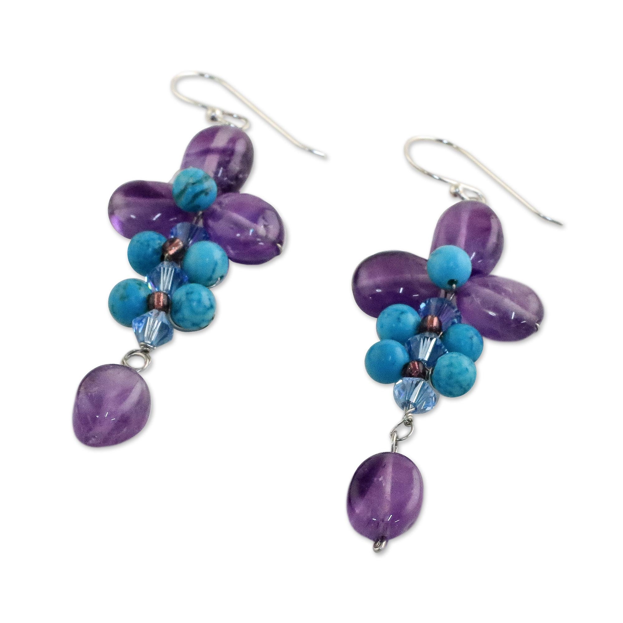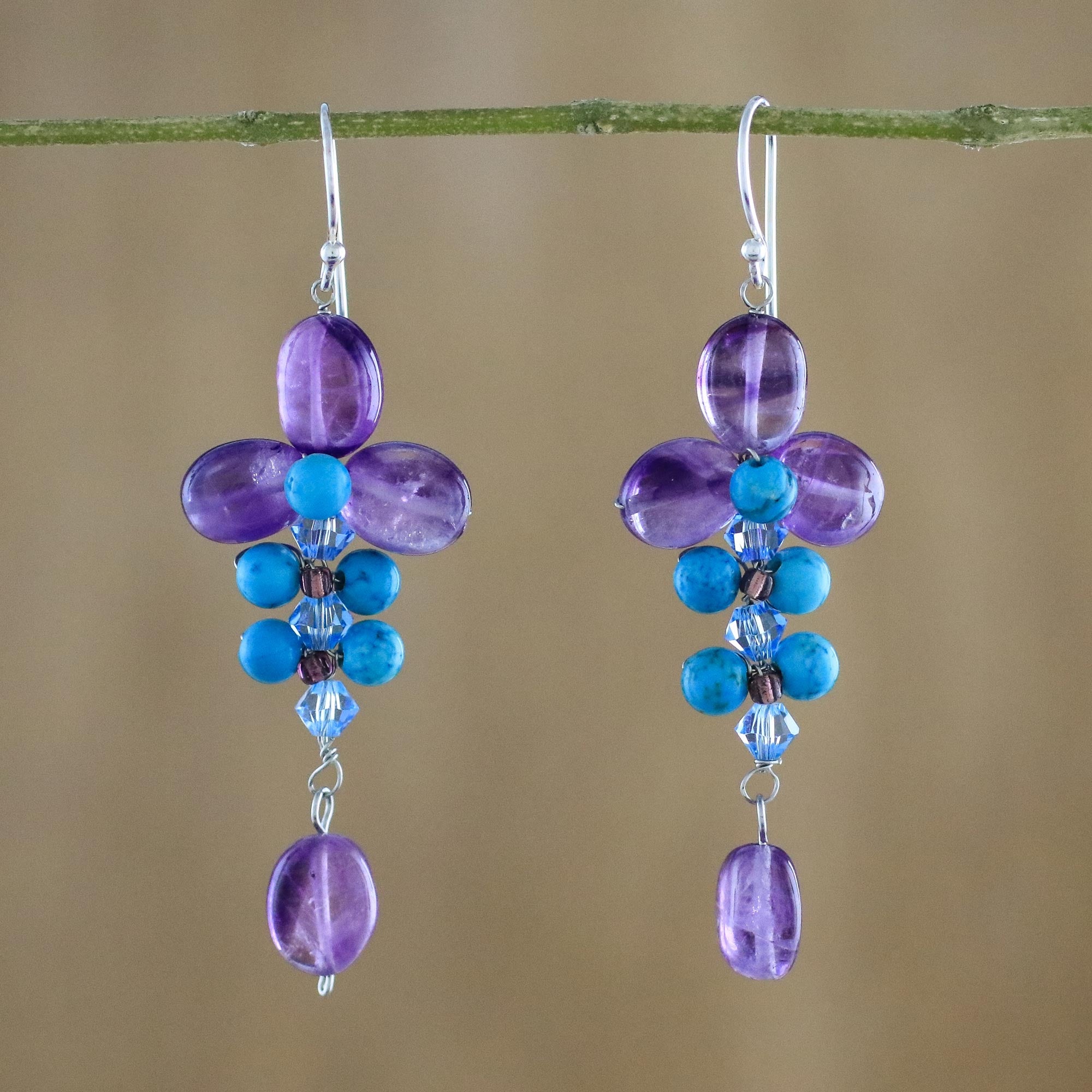 - Amethyst, dyed calcite, glass beads, stainless steel, 925 sterling silver hooks