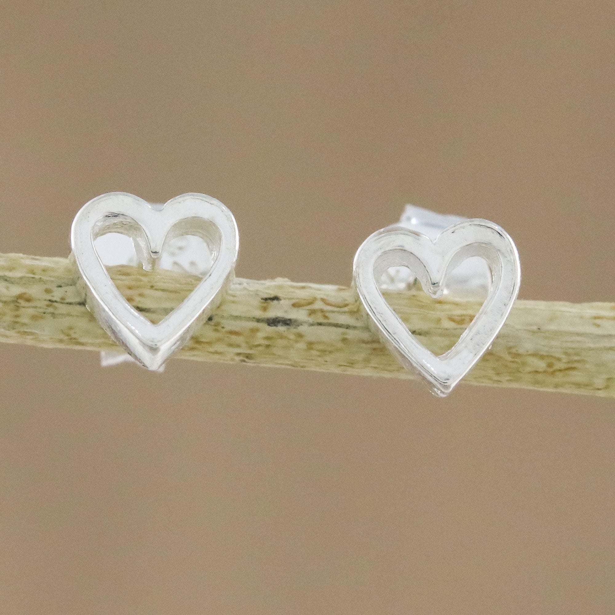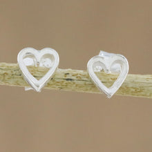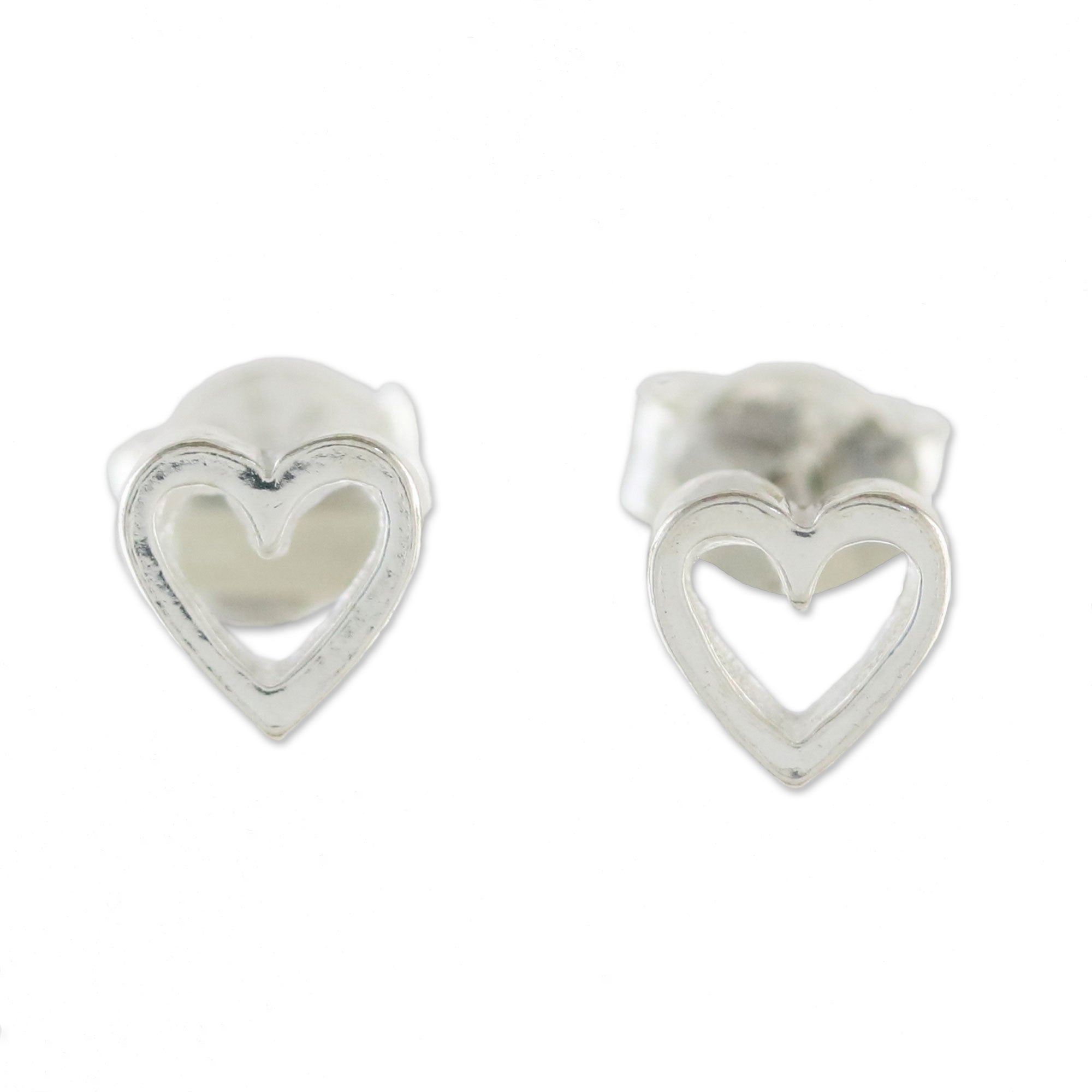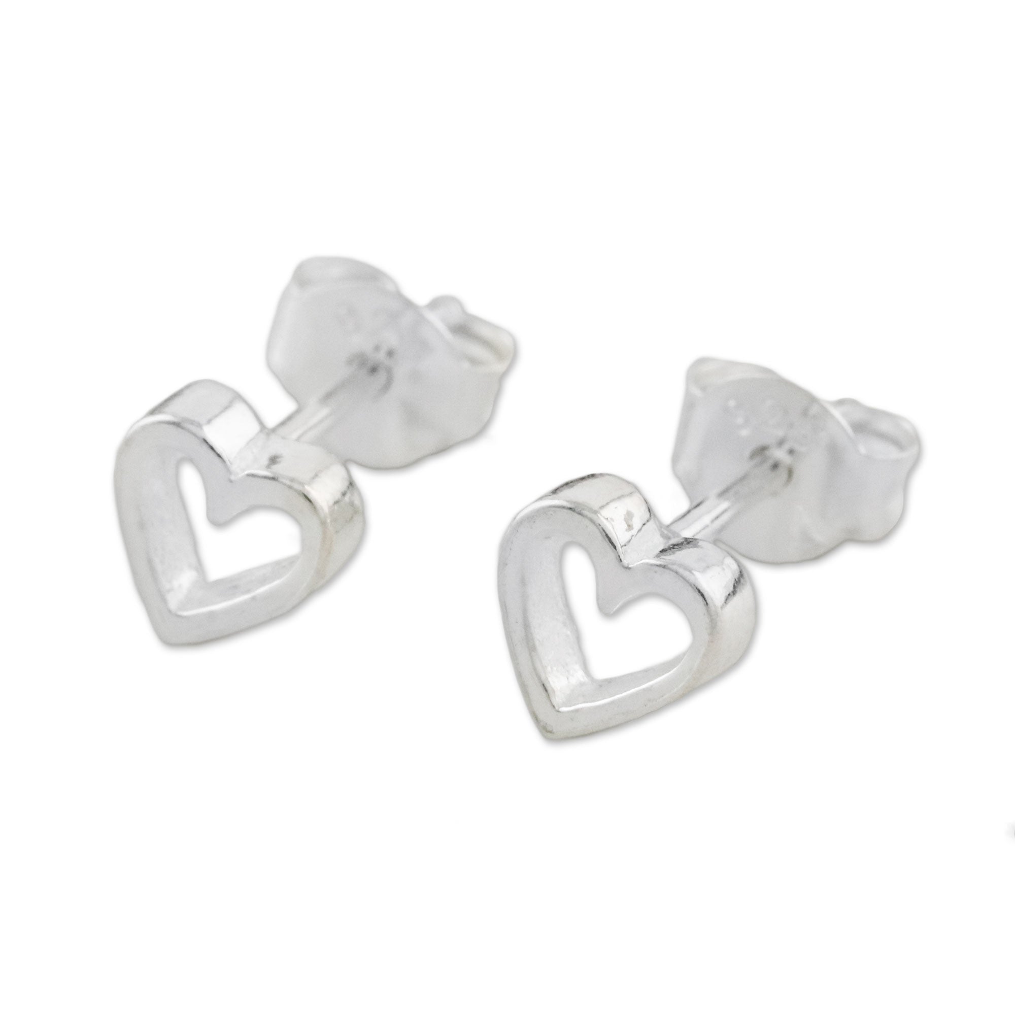 Give this message of love to someone special in your life. Presented by Thailand's Wadarat Supasirisuk, two heart-shaped stud earrings are crafted of sterling silver by local artisans.