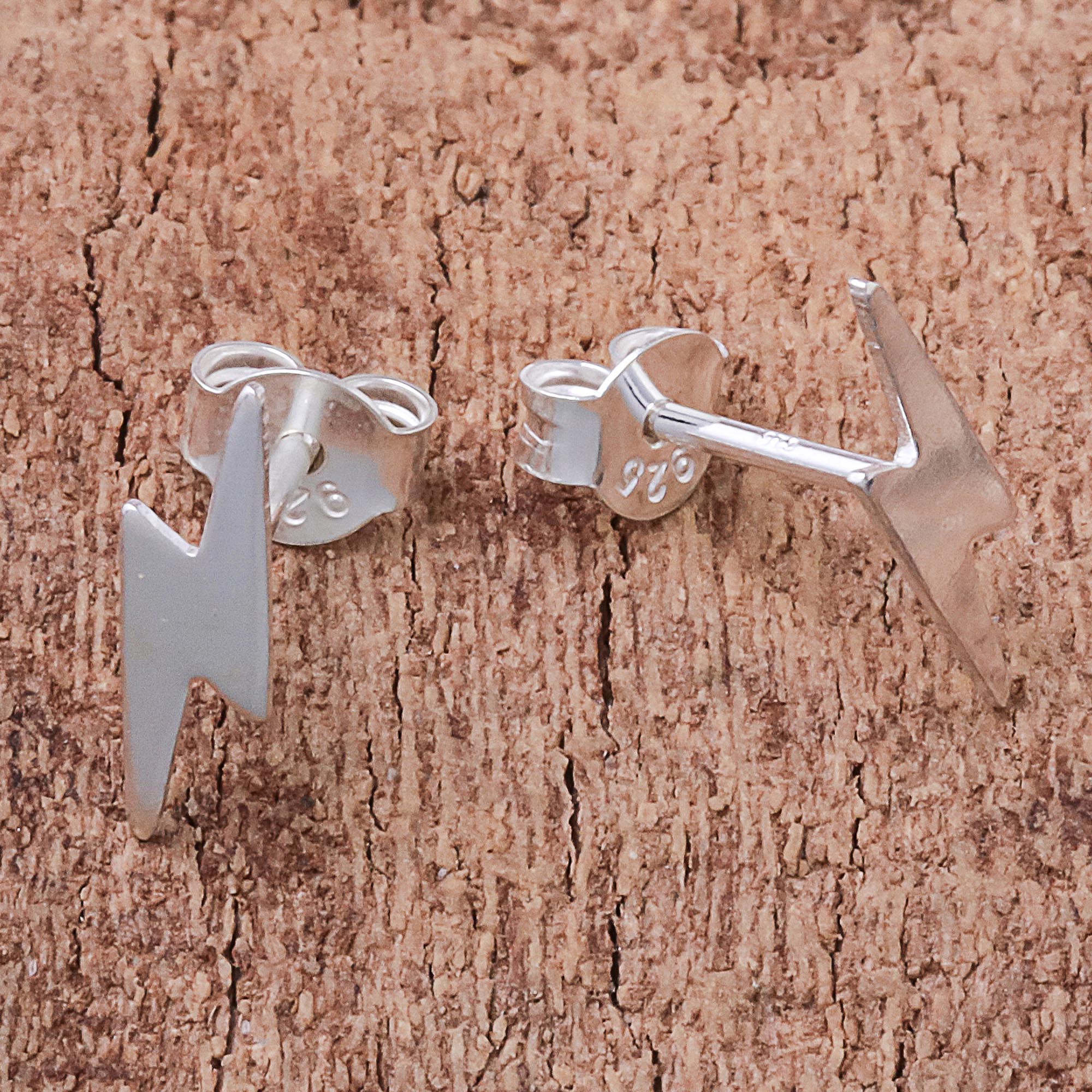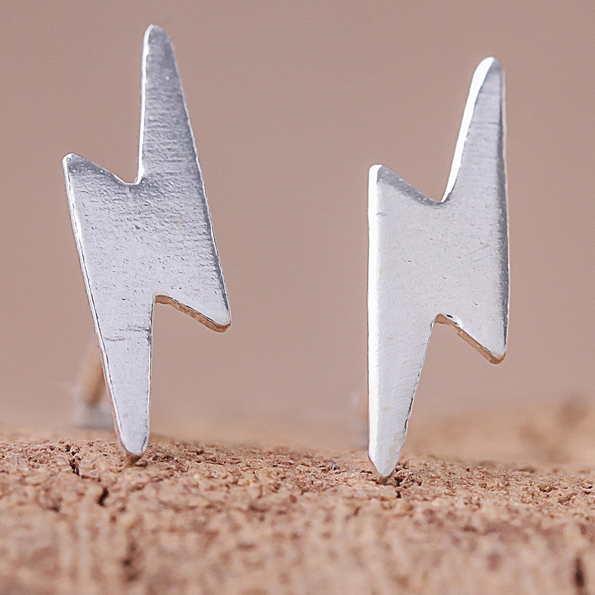 Crafted of sterling silver with a high-polish finish, two lightning bolt shapes adorn the ears with beauty. Wadarat Supasirisuk presents this pair of stud earrings, crafted by local artisans from Thailand.