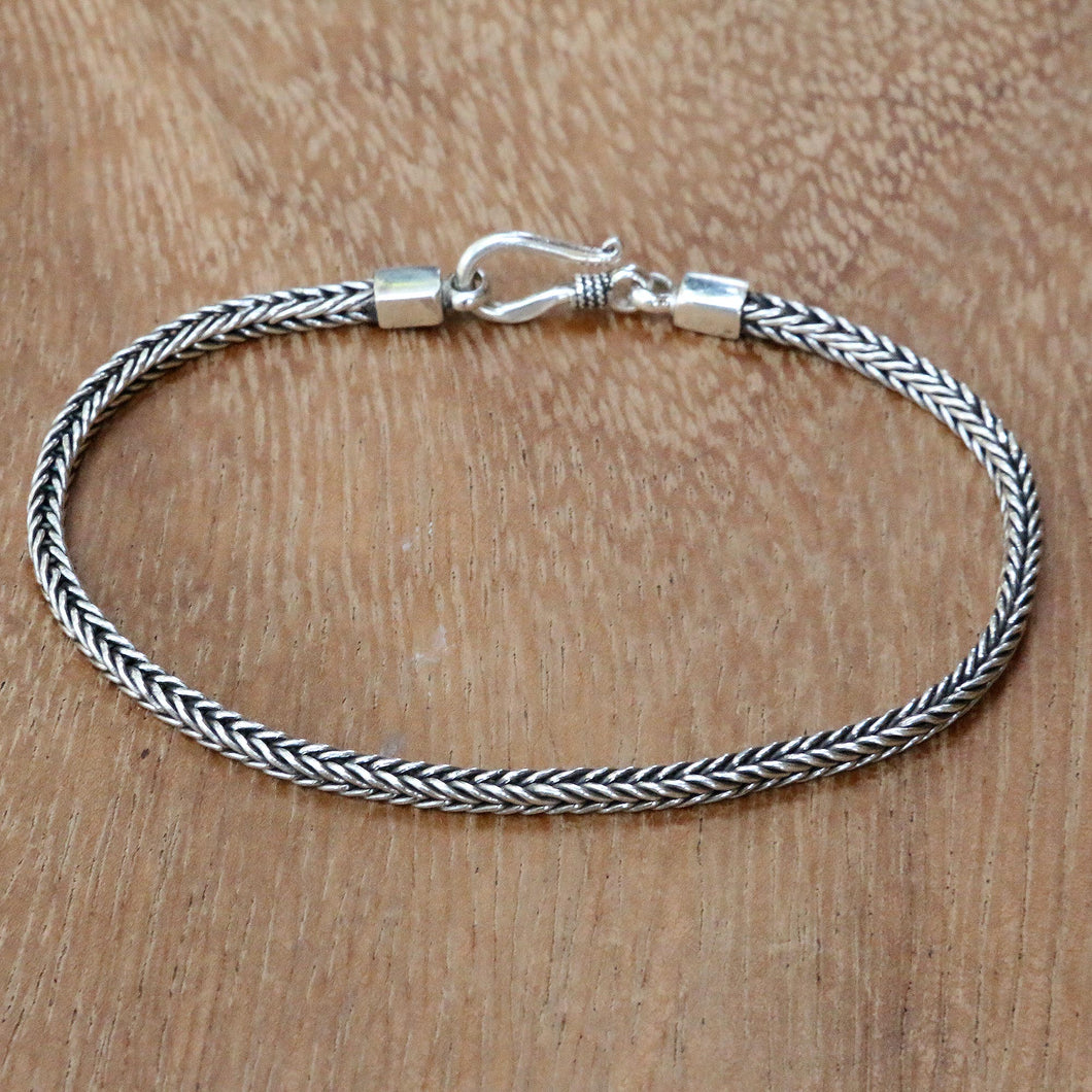 Classic with a modern flair, this sterling silver bracelet featuring a foxtail chain and hook clasp is presented by Wayan Asmana of Bali. The artisan calls his design naga, which means 'dragon' or 'snake' in the Balinese language.